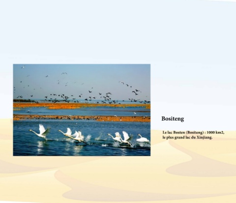 Bositeng --- "-iiii----- -- - .... Le lac Bosten (Bositeng) : 1000 km2, le plus grand lac du Xinjiang.