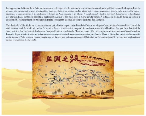 des chinois, l'Asie centrale n'apprit pas seulement à couler le fer, mais aussi à fabriquer du papier. À la fin de sa gloire, la Route de la Soie a